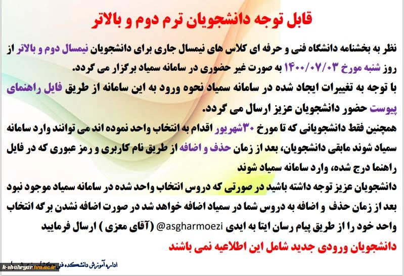 اداره امور دانشجویی و مشاوره