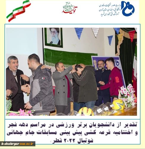 امتیاز دهید : مراسم گرامیداشت دهه مبارک فجر و اختتامیه «پیش بینی مسابقات جام جهانی فوتبال 2022 قطر» 9 پنجشنبه 27 بهمن 1401 ساعت 0:03