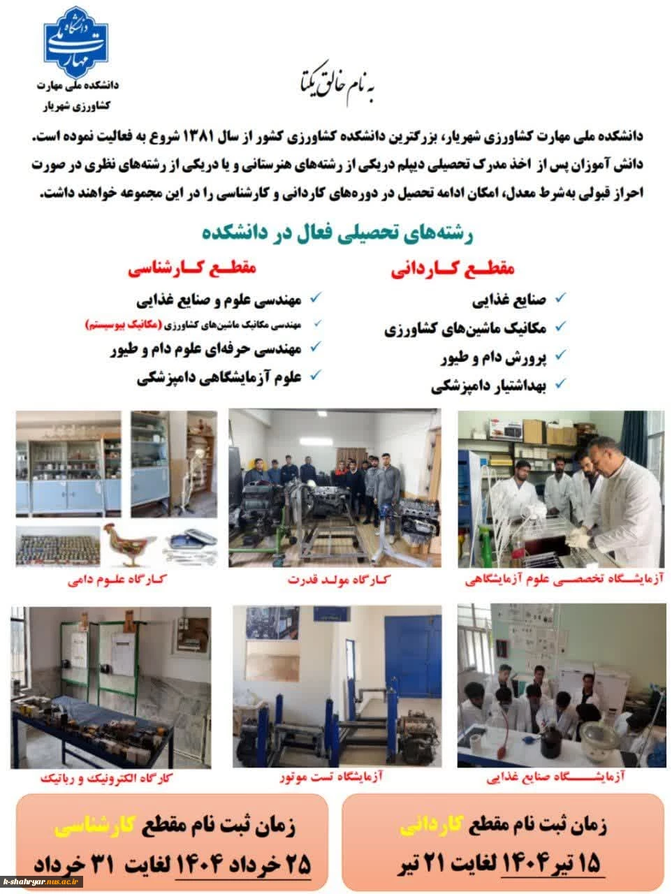 امتیاز دهید : ثبت نام کاردانی به کارشناسی دانشکده ملی مهارت کشاورزی شهریار 4 دوشنبه 2 تیر 1404 ساعت 20:05