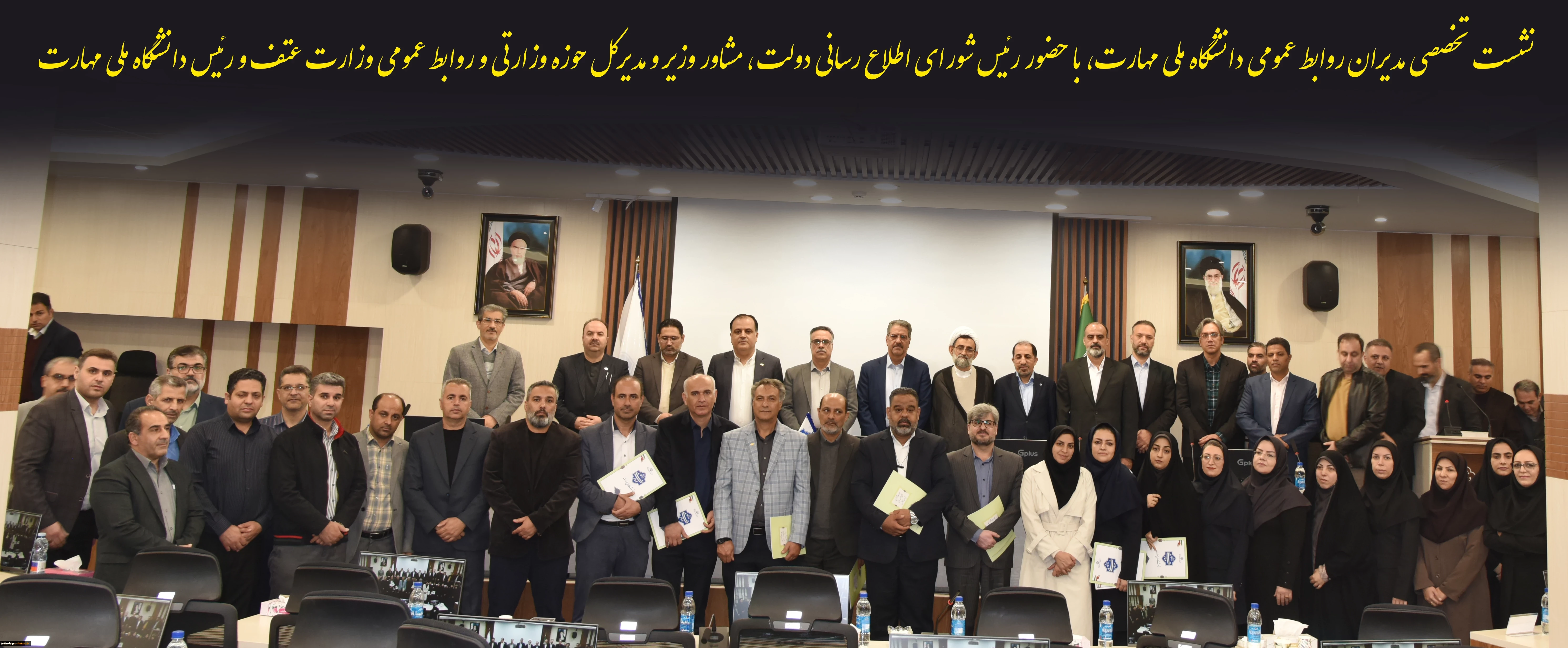 امتیاز دهید : نشست تخصصی مدیران روابط عمومی دانشگاه ملی مهارت، با حضور رئیس شورای اطلاع رسانی دولت، مشاور وزیر و مدیرکل حوزه وزارتی و روابط عمومی وزارت عتف و رئیس دانشگاه ملی مهارت 2 شنبه 15 آذر 1404 ساعت 9:48